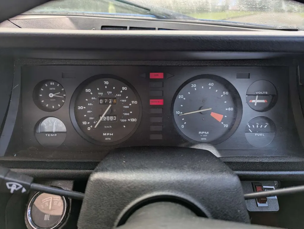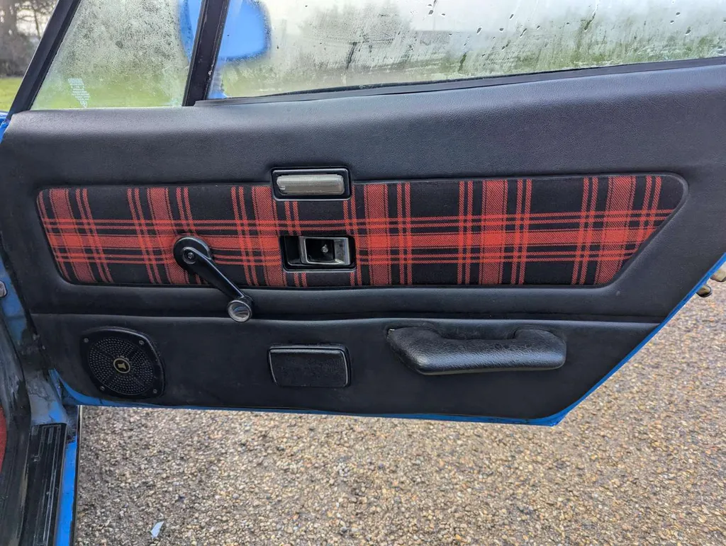 This Triumph TR7 is a rare automatic example in Pageant Blue with a red tartan interior, purchased by the vendor from one of our sales in 2024. He states that it “runs and drives well,” with 85,800 miles showing on the odometer. There have been only 3 registered keepers from new. The car has been fitted with an oil pressure gauge, electric fan and an ejector seat button – untested, but reportedly not operational! Although the MoT expired in 2018 and only a few receipts come with the car, we're told it has recently received an oil & filter change, new distributor cap and rotor arm, spark plugs, ignition timing checked and carbs balanced, fuel filter cleaned, diff oil replaced, new numberplates, wheel trims, decals for the boot and engine bay, new rocker cover gasket and new aftermarket air filters.The vendor advises that the headlights work but have to be raised/lowered manually, and the fuel gauge is not reading.The V5C is present, indicating 1st August 1980 as the date of first registration. Not specified