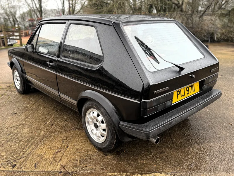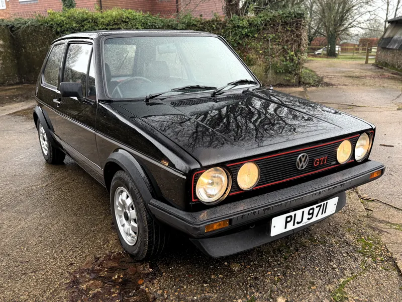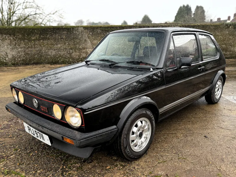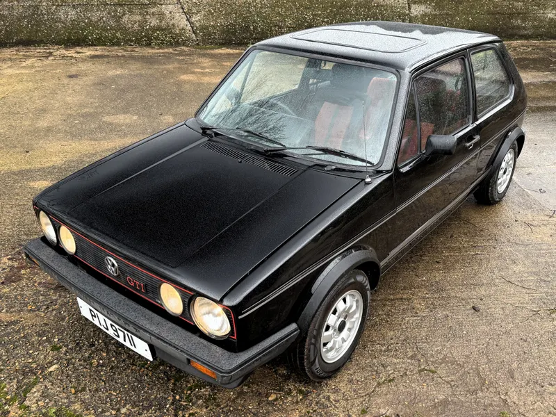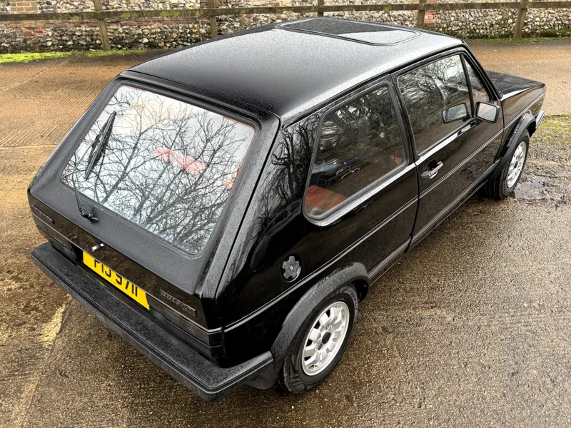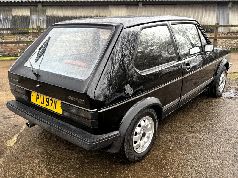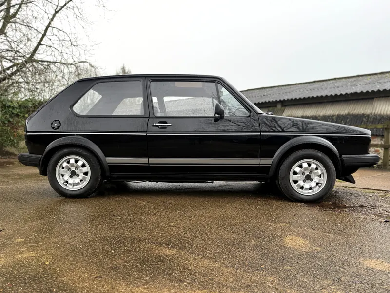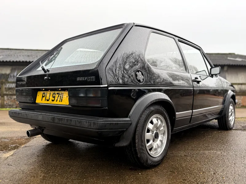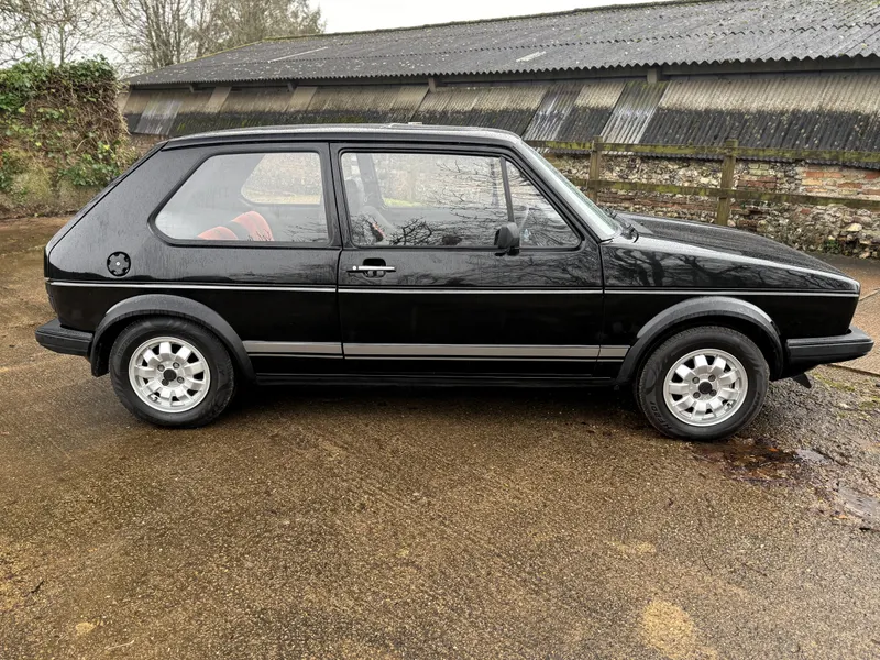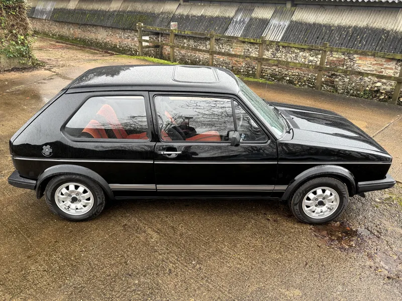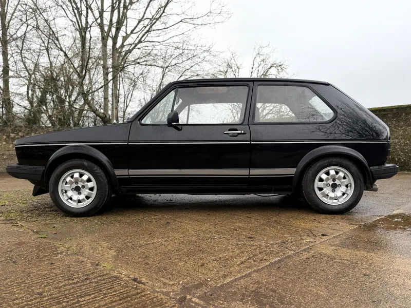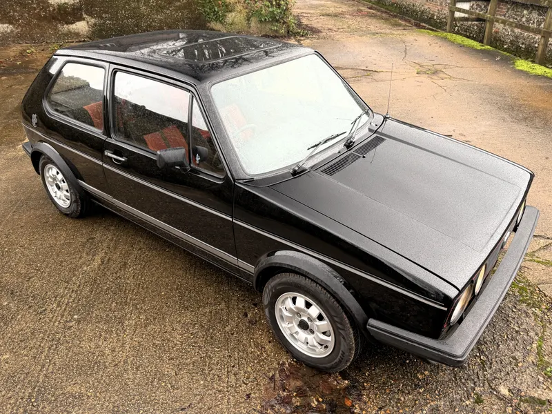 motodrome offer for sale this fine looking example of the iconic Mark 1 Golf GTi – this a 1982 1.8 5-speed, finished in Jet Black with contrasting sports trim. . Fitted with sunroof, campaign-style quad lamp grille, and 13in alloys with a matching set of near-new tyres. Inside it’s standard except for a more modern radio/CD Odometer reading 111000m. This one seems to have started it’s life in Northern Ireland, before coming to the mainland in 1989, and still wears it’s original NI registration number as was permitted at the time. As far as we can establish, it was taken off the road in 2013 needing restoration, which never really got started until the last owner bought it as a stalled project in 2024, and immediately set to work. Mechanically all seemed good bar the usual, recommissioning, but the body was in a bad way. We’re told he carried out the following New wings New sills New front panel New rear panel New windscreen New headlights and exhaust New tyres on refurbished wheels Followed by a repaint in the original colour scheme with the right silver decals. The work was finished in Summer 2025 and it’s done minimal mileage since. History-wise we have a good sheaf of bills from the recent refurbishment, a large sheaf from the late 1990’s to 2002 (including an engine rebuild in 2000) at circa 80000 miles, and old MOT’s back to 1982. On our own website, you’ll find our usual two videos: a walkaround appraisal, and driving impressions, which form part of the description. Viewing by prior appointment
