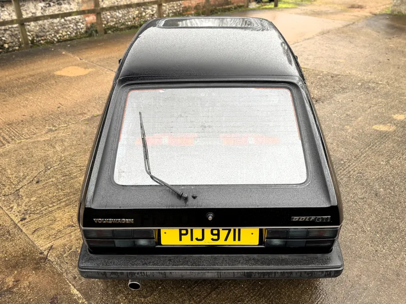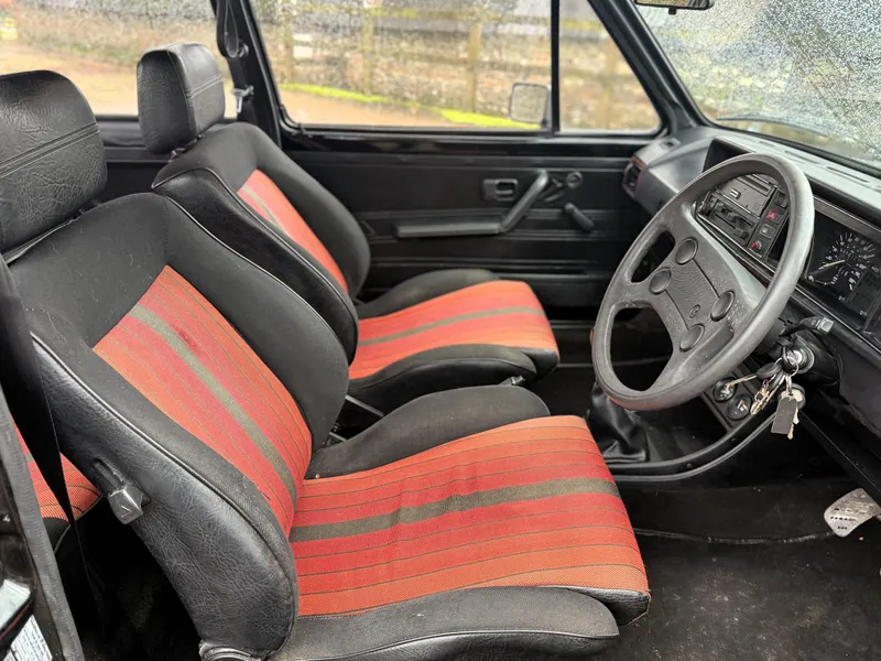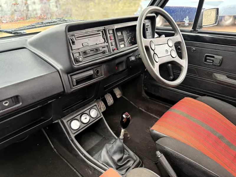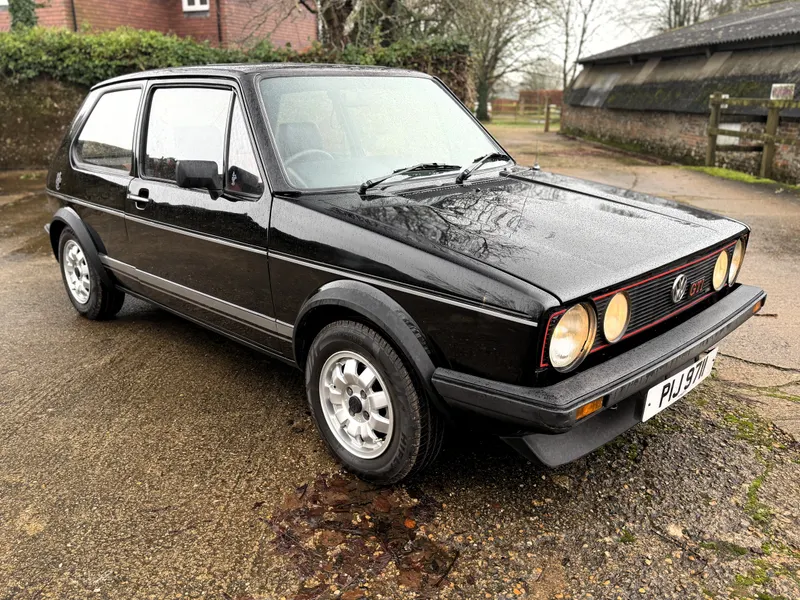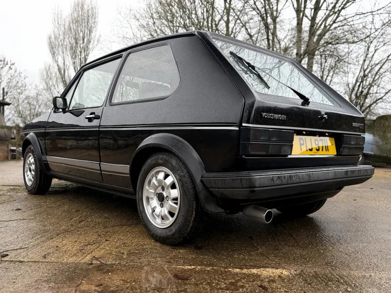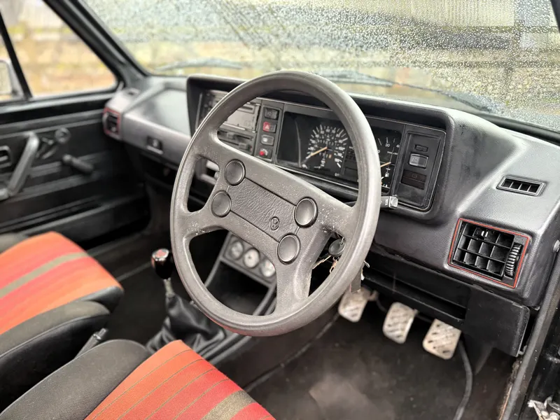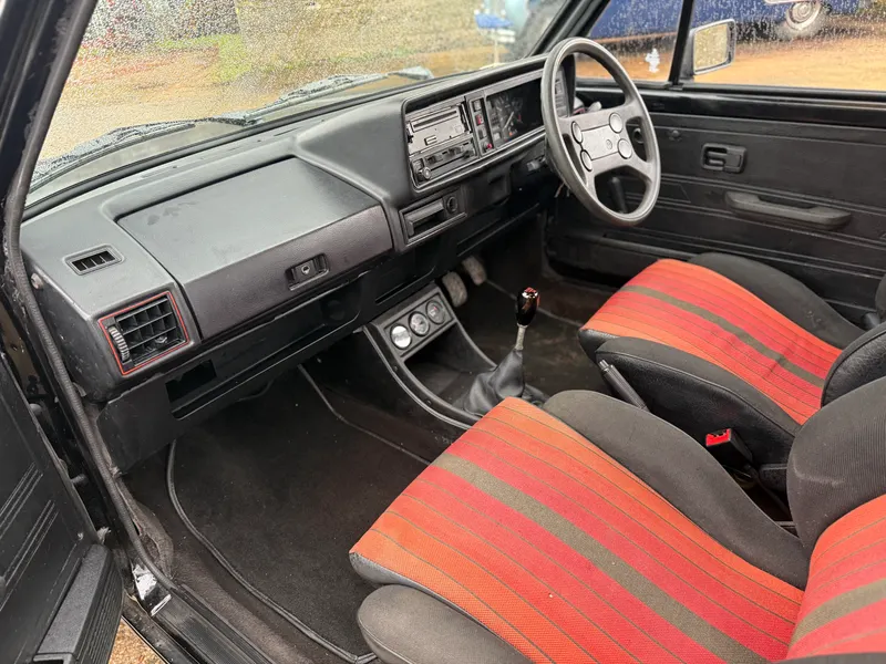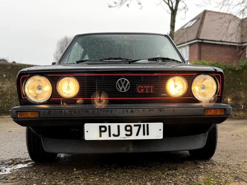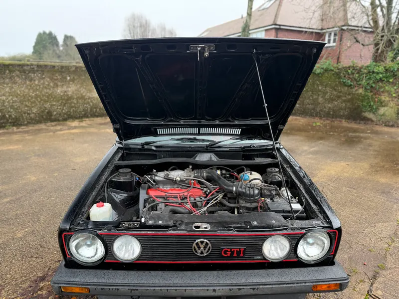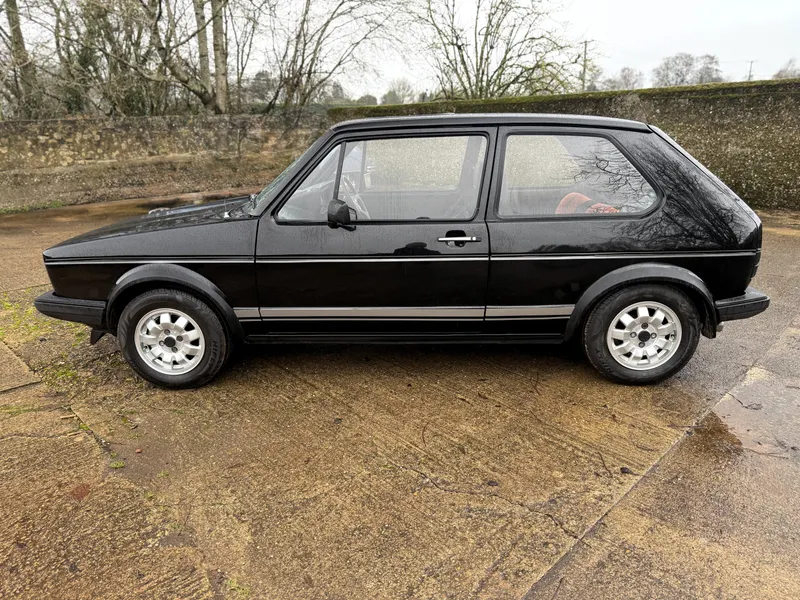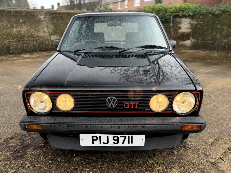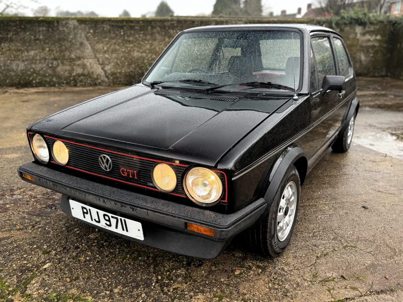 motodrome offer for sale this fine looking example of the iconic Mark 1 Golf GTi – this a 1982 1.8 5-speed, finished in Jet Black with contrasting sports trim. . Fitted with sunroof, campaign-style quad lamp grille, and 13in alloys with a matching set of near-new tyres. Inside it’s standard except for a more modern radio/CD Odometer reading 111000m. This one seems to have started it’s life in Northern Ireland, before coming to the mainland in 1989, and still wears it’s original NI registration number as was permitted at the time. As far as we can establish, it was taken off the road in 2013 needing restoration, which never really got started until the last owner bought it as a stalled project in 2024, and immediately set to work. Mechanically all seemed good bar the usual, recommissioning, but the body was in a bad way. We’re told he carried out the following New wings New sills New front panel New rear panel New windscreen New headlights and exhaust New tyres on refurbished wheels Followed by a repaint in the original colour scheme with the right silver decals. The work was finished in Summer 2025 and it’s done minimal mileage since. History-wise we have a good sheaf of bills from the recent refurbishment, a large sheaf from the late 1990’s to 2002 (including an engine rebuild in 2000) at circa 80000 miles, and old MOT’s back to 1982. On our own website, you’ll find our usual two videos: a walkaround appraisal, and driving impressions, which form part of the description. Viewing by prior appointment