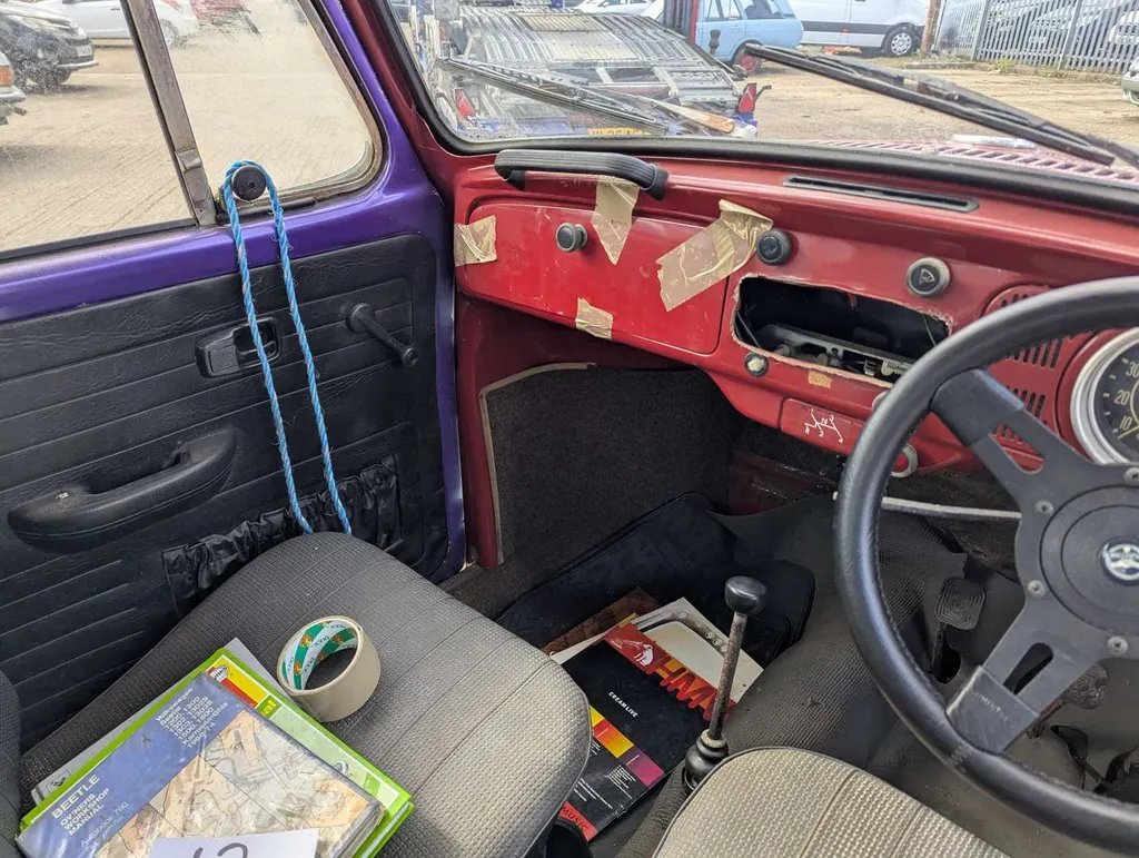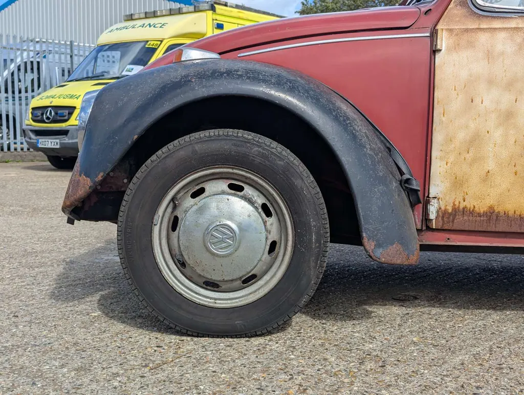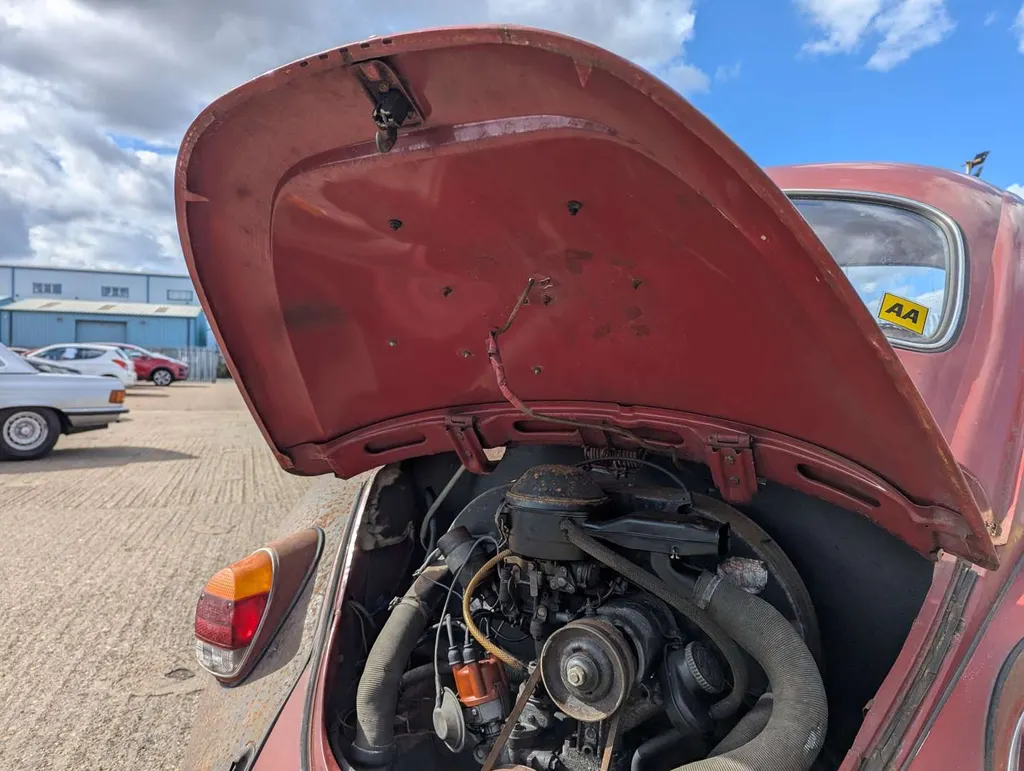 1285cc. This Volkswagen Beetle 1300 is being sold as a non-running project, ready for restoration. The only paperwork is the V5C, which is current, and shows only two previous owners. We're told the car has been in the same family for the last 12 years. It was first registered on 3rd July 1970, and the indicated mileage is 80,521. Not specified